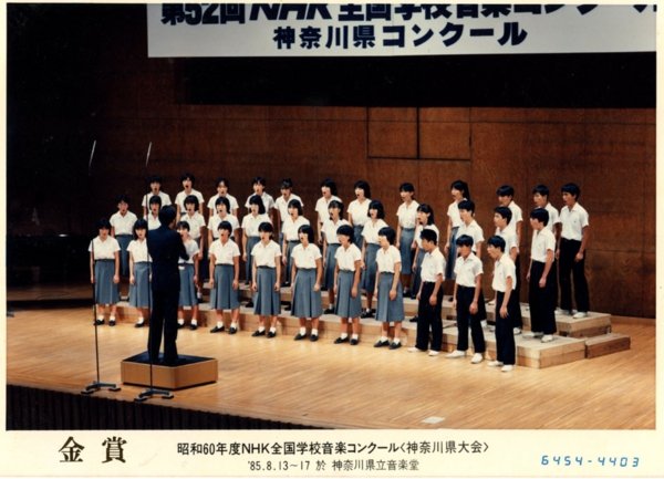 まだ当時は合唱部がなく、毎夏のNHK全国合唱コンクールには3年生の有志が夏休み返上の特訓を受けて出場しておりましたが、日頃の積み重ねもあって、神奈川県大会で金賞を連続して受賞するほどの実力を示していました。