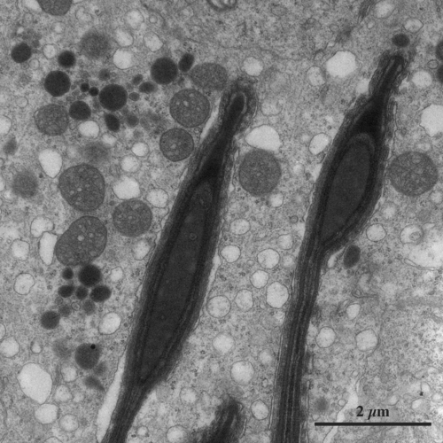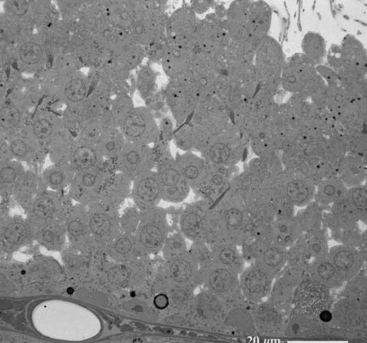 Transmission electron microscopic image of 70 - 80 nm ultrathin section