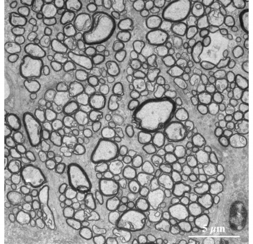 視神経を構成する有髄神経線維 myelinated nerve fibers の横断面