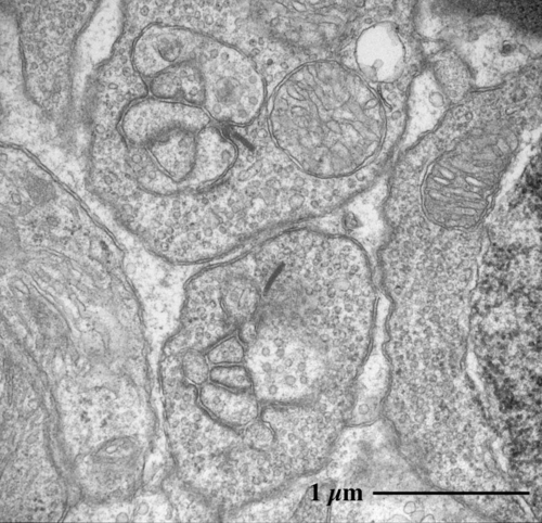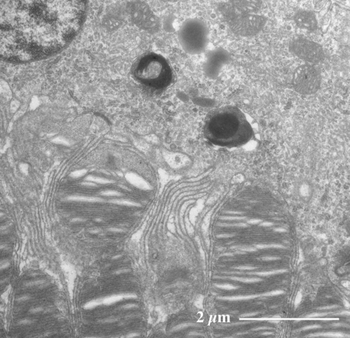 Transmission electron microscopic image of 70 - 80 nm ultrathin section