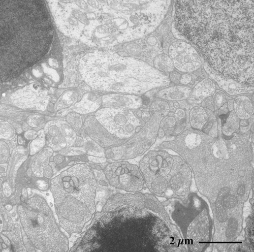 【 薄さ70 - 80 nm 超薄切片の透過型電子顕微鏡画像 】