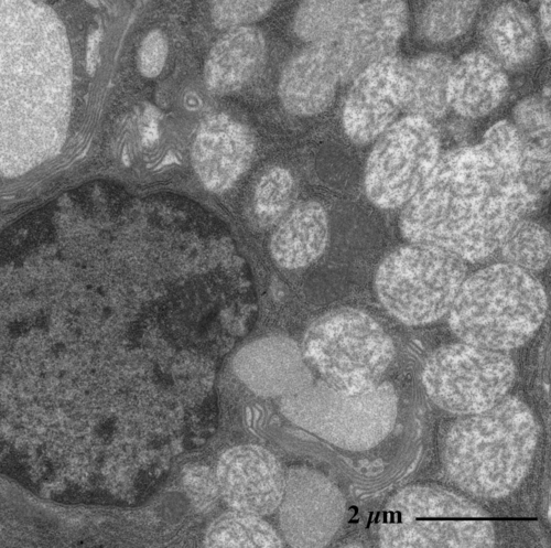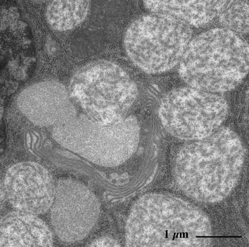 (エポン樹脂包埋準超薄切片のトルイジンブルー染色光顕像)