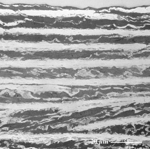 弾性型動脈に分類される大動脈の中膜は膠原線維や弾性線維、細網線維によって構成されます。