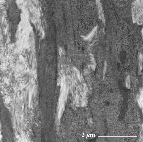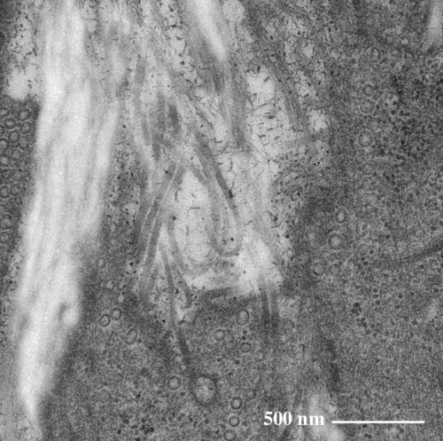 【 薄さ70 - 80 nm 超薄切片の透過型電子顕微鏡画像 】