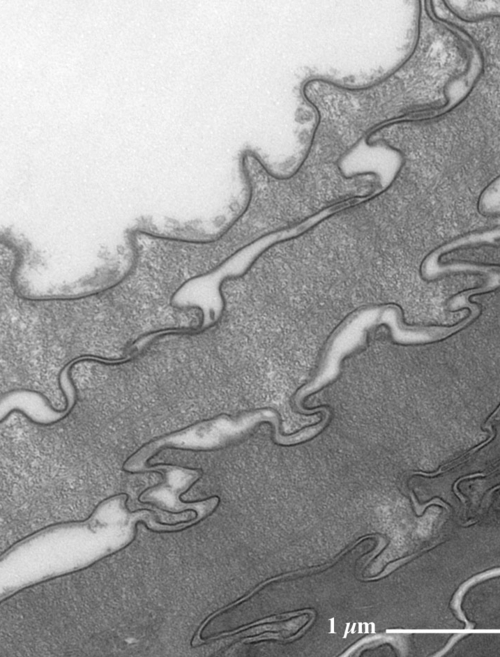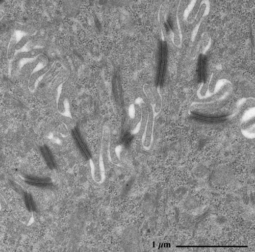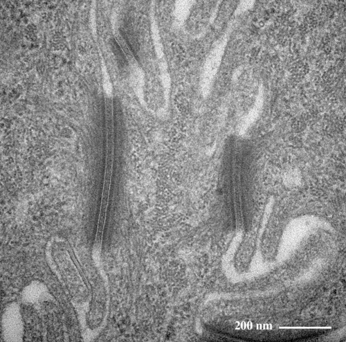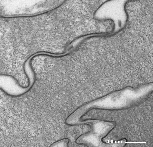 【 薄さ70 - 80 nm 超薄切片の透過型電子顕微鏡画像 】