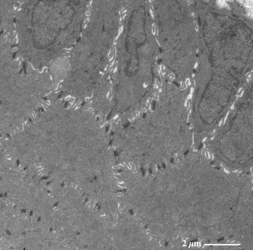 Transmission electron microscopic image of 70 - 80 nm ultrathin section