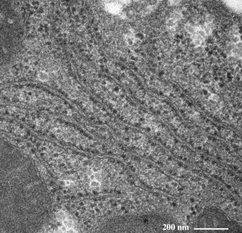 Transmission electron microscopic image of 70 - 80 nm ultrathin section
