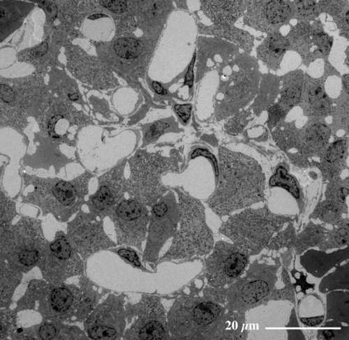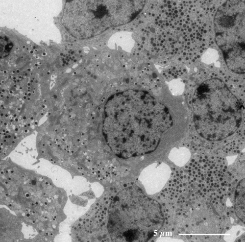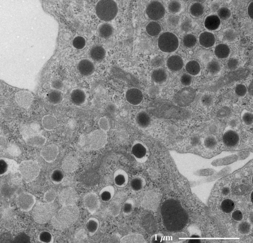 Transmission electron microscopic image of 70 - 80 nm ultrathin section