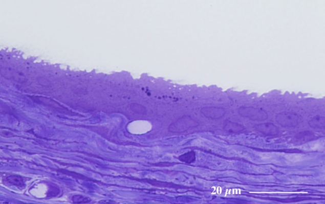 Light microscopic image of 1 µm-semithin epoxy resin section with toluidin-blue staining