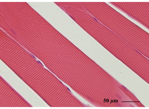 横紋筋に分類される骨格筋には規則的な紋様が観察されます。