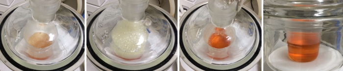 次に真空ポンプで混入した気泡を除去します。目に見えない気泡が重合熱で膨張して樹脂内に固まり、観察の妨げになりますので、十分に脱気する必要があります。