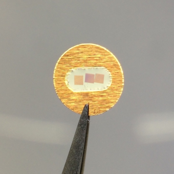 切り出された超薄切片を睫毛プローブ(睫毛を瞬間接着剤で竹ひごの先に付けたもの)の先端で移動させながら、支持膜をはったグリッドの観察孔部分に切片の一部を付着させ、引き上げるようにして捕捉します。