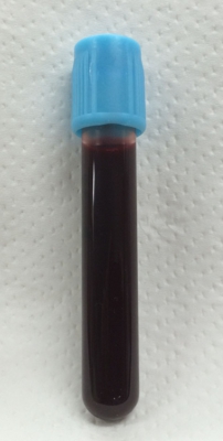 はじめに、抗凝固剤(クエン酸ナトリウム)を含む真空採血管(4.5 ml)に採血された血液から血小板を遠心分離します。
