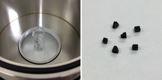 エタノールに置換・脱水された試料を、t-ブチルアルコールに置換した後、凍結乾燥装置で昇華・乾燥させます。この方法によって、試料の収縮・変形を極力、抑えて乾燥させることができます。