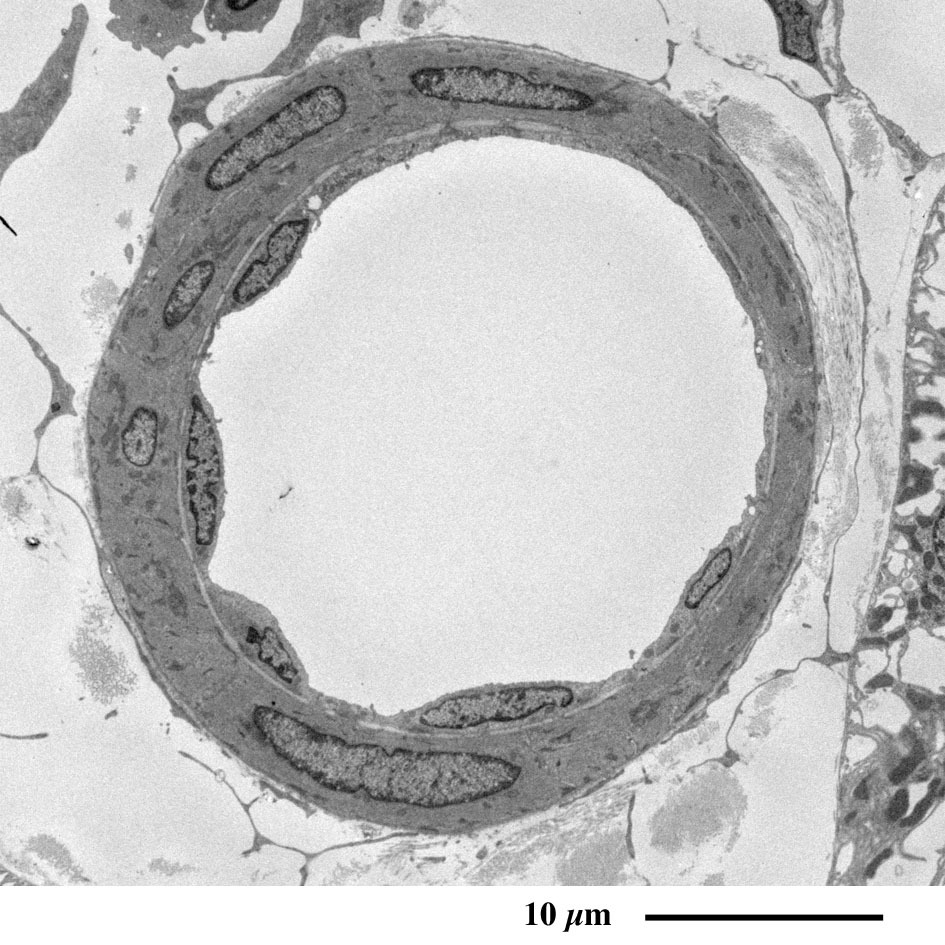 (全周を足細胞の突起に囲まれた血管壁の横断面)