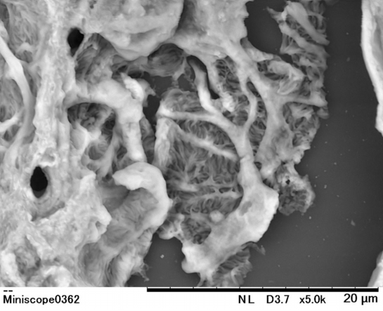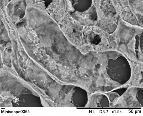 【 厚さ20 µm パラフィン切片の低真空走査型電子顕微鏡画像 】