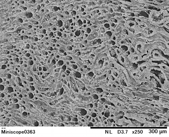 【 厚さ30 µm パラフィン切片の低真空走査型電子顕微鏡画像 】