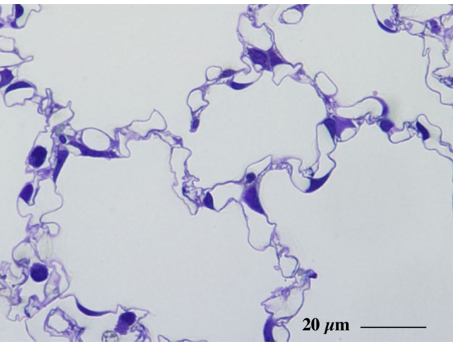 厚さ1 µm エポン樹脂準超薄切片のトルイジンブルー染色光学顕微鏡画像