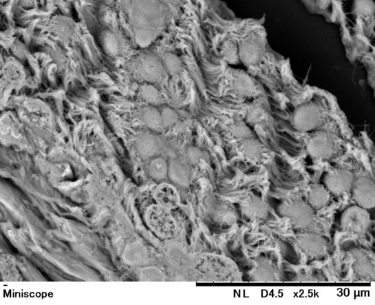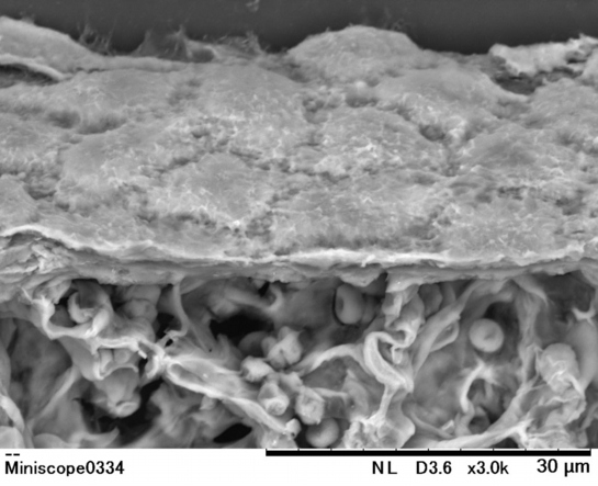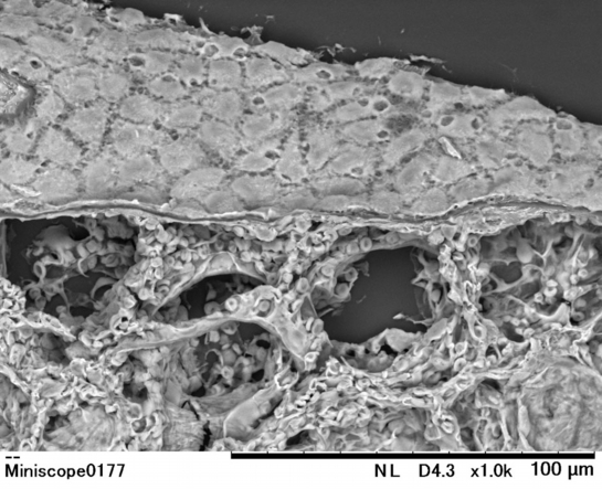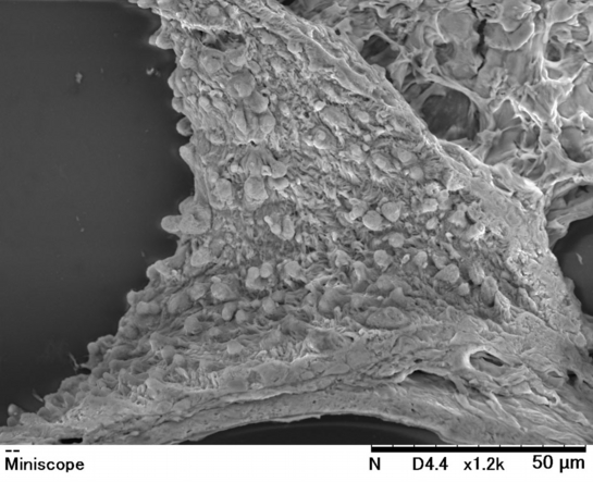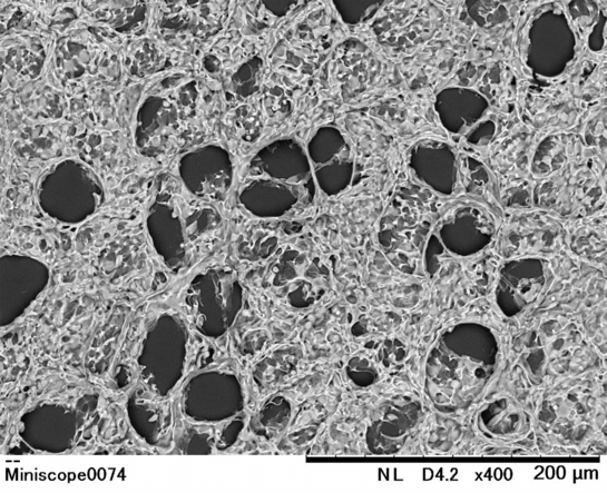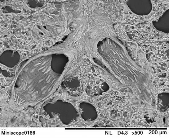 【 厚さ30 µm パラフィン切片の低真空走査型電子顕微鏡画像 】