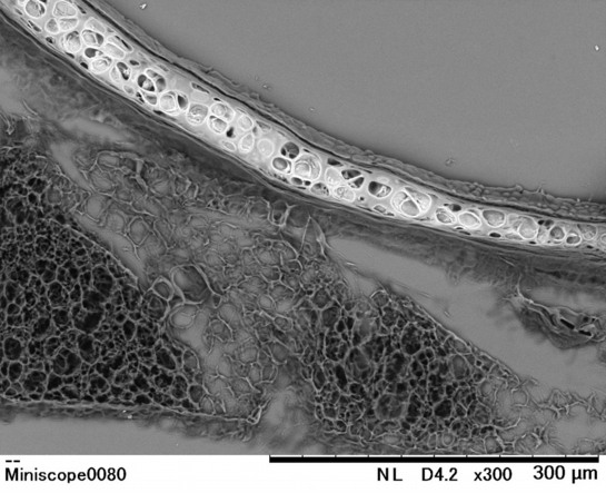 【 厚さ30 µm パラフィン切片の低真空走査型電子顕微鏡画像 】