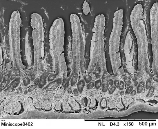 消化された栄養分を吸収する小腸の内腔表面は、絨毛と呼ばれる構造によって