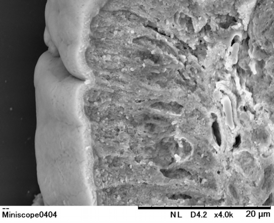 【 厚さ20 µm パラフィン切片の低真空走査型電子顕微鏡画像 】