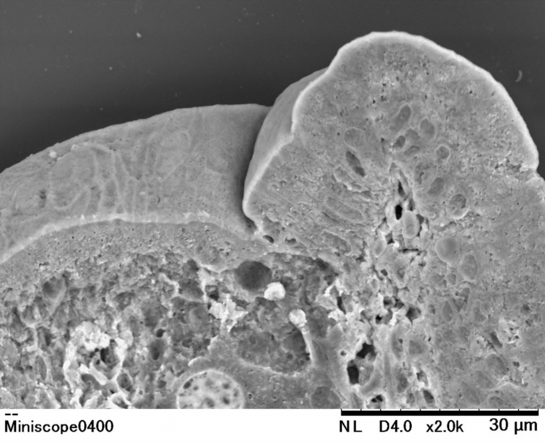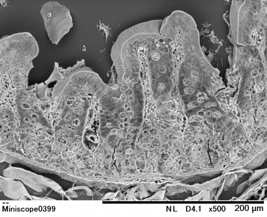 【 厚さ20 µm パラフィン切片の低真空走査型電子顕微鏡画像 】