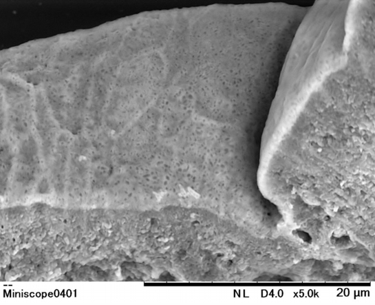 Low-voltage scanning electron microscopic image of 20 µm-thick paraffin section