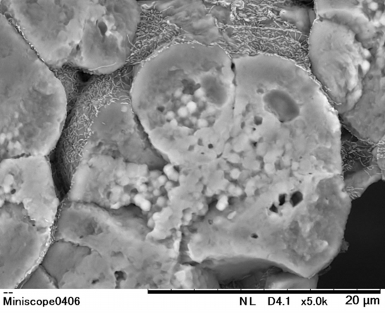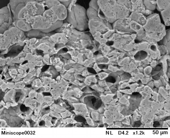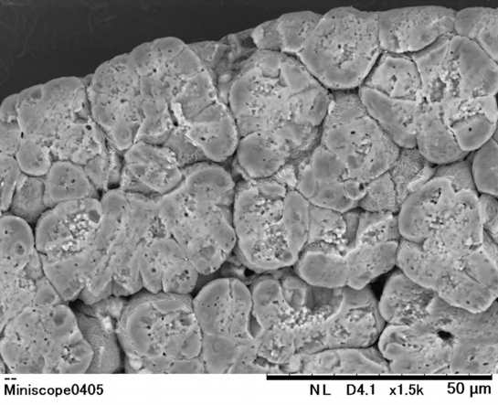 【 厚さ20 µm パラフィン切片の低真空走査型電子顕微鏡画像 】