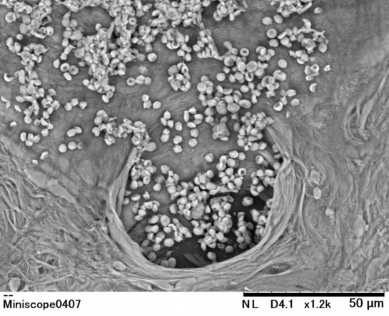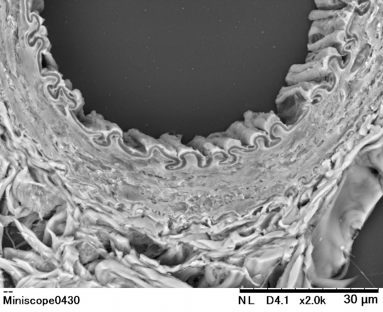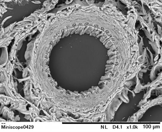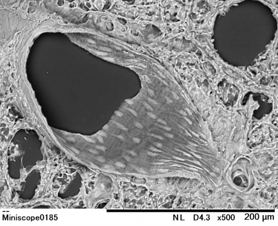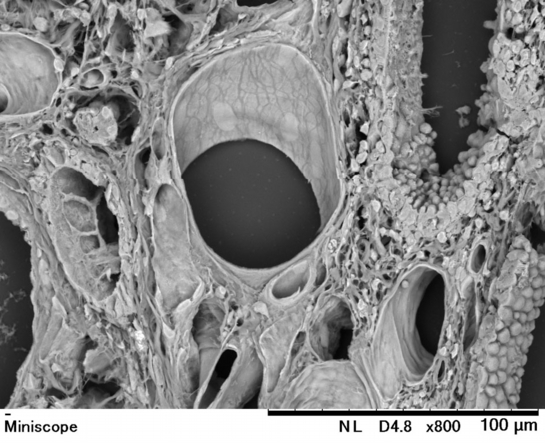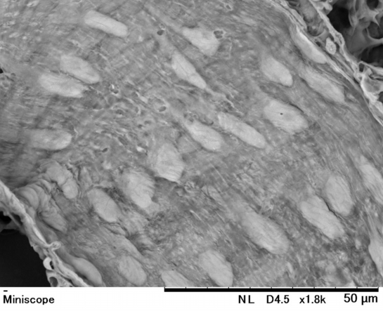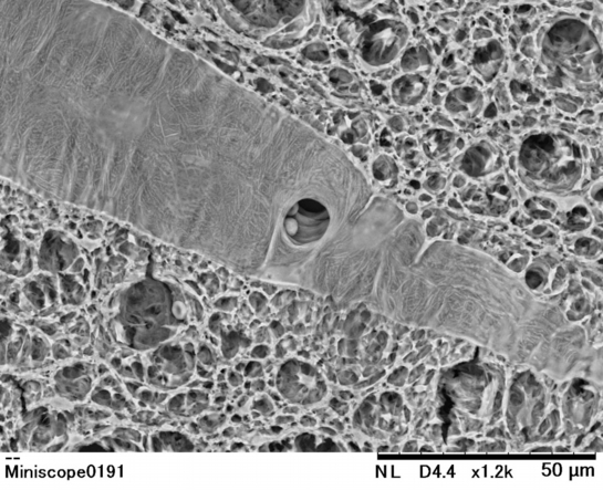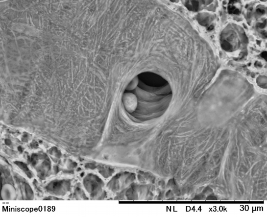 【 厚さ30 µm パラフィン切片の低真空走査型電子顕微鏡画像 】