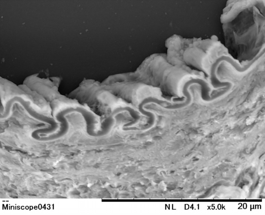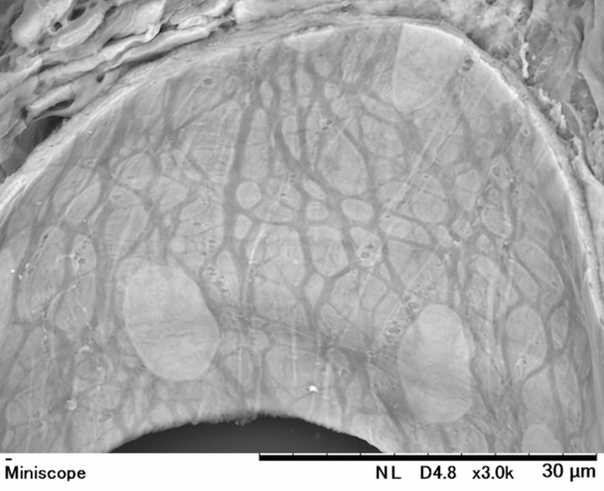 Low-voltage scanning electron microscopic image of 30 µm-thick paraffin section