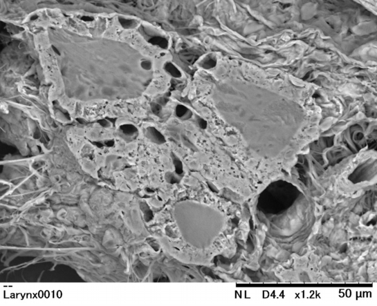【 厚さ30 µm パラフィン切片の低真空走査型電子顕微鏡画像 】