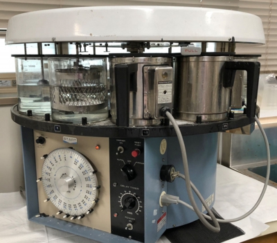 通常、自動パラフィン浸透機を利用して、50%、70%、90%、100%エタノールに段階的に入れ替えながら脱水を進めた後、パラフィンに馴染みやすいキシレンを浸透させます。