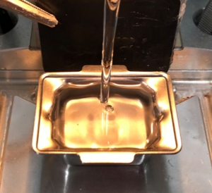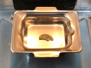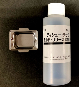 予め離脱剤を塗布した包埋皿にパラフィンを流し込み、中央にあわせて試料を入れます。