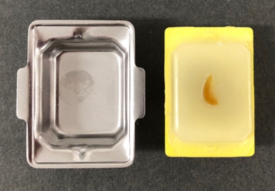 硬化したパラフィンのブロックを包埋皿から離脱すると完成です。