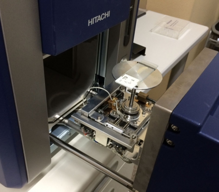 試料室を閉め、ポンプを作動させて数分後に内部が観察に適した低真空状態にセットされます。