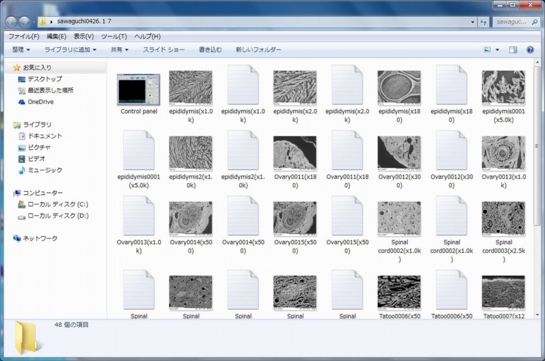 保存された画像は指定のフォルダに収録されるので、電子媒体に記録して持ち帰り、研究室のPCで保管することが出来ます。