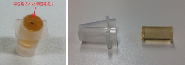 そこで、当研究室では独自の樹脂包埋補助ツールを利用して再包埋しております。