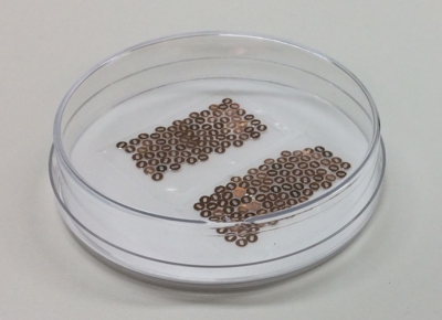 出来上がった支持膜付きグリッドは濾紙の上に載せて、埃が付着しないようシャーレ等に入れて保管します。