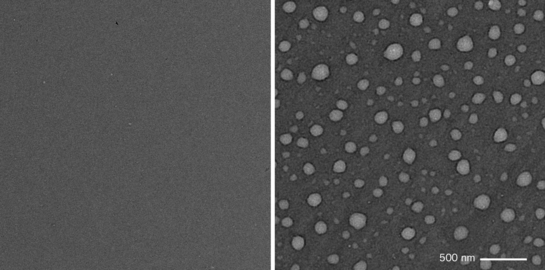 参考)均質で良好な支持膜(左)と無数の孔が形成されて不良な支持膜(右)