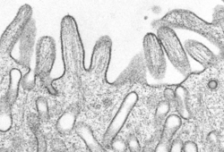 電子顕微鏡が誇る最大の特徴は高い分解能(見分けられる2点間の最小距離)にあり、電子顕微鏡の開発によって細胞膜をはじめ、ミトコンドリアや粗面小胞体などの細胞内小器官が詳細に解明され、生命科学が飛躍的な発展を遂げました。