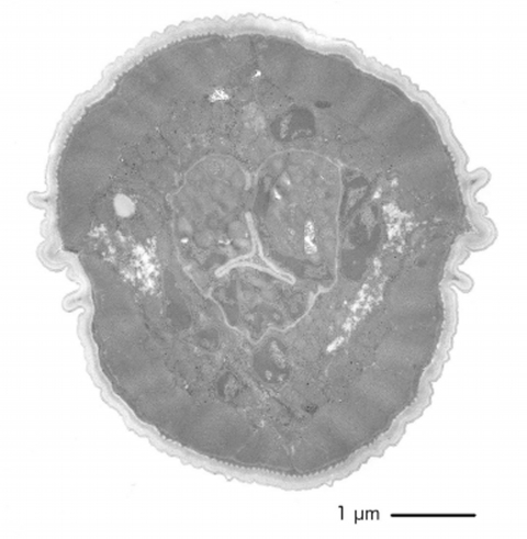 糞線虫 Stongyloides venezuelensis の電子顕微鏡像(横断面)