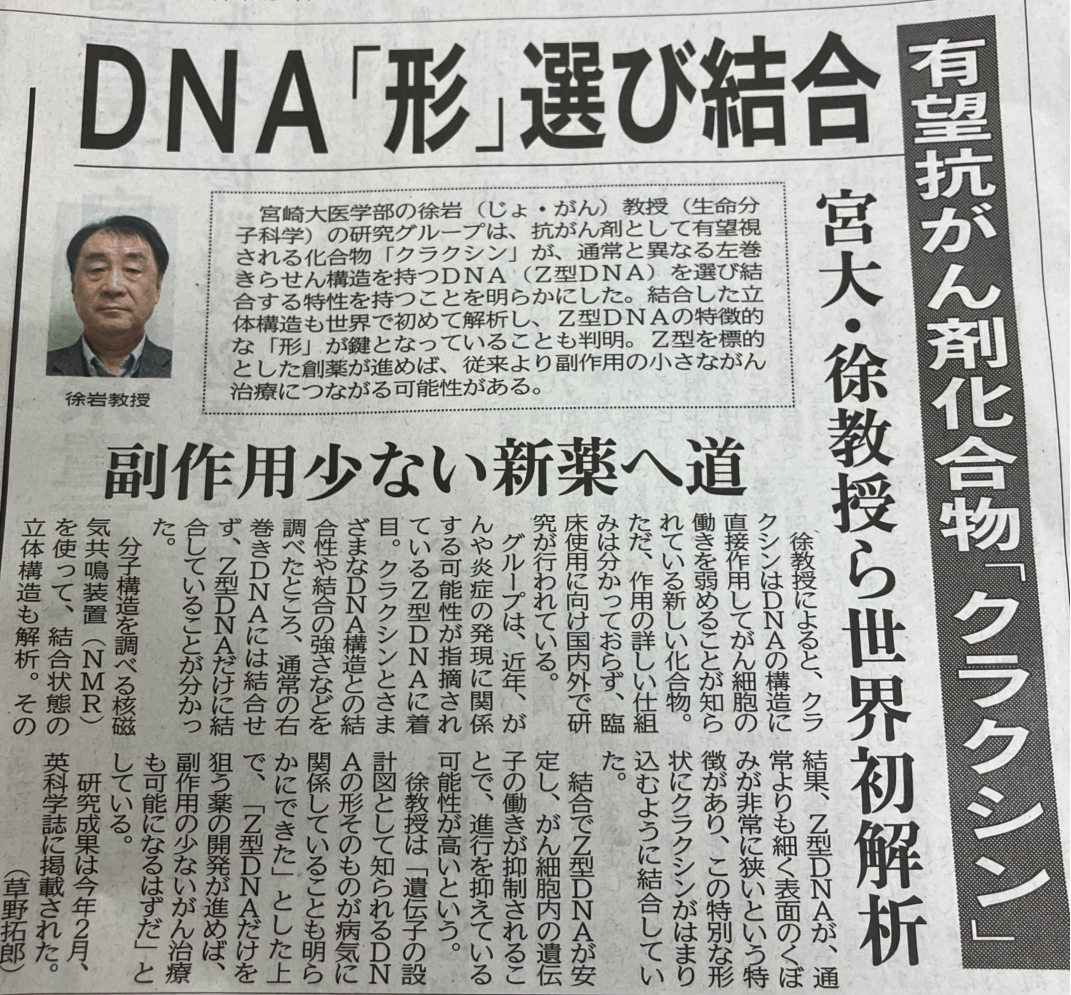 論文"Solution structure of Z-form DNA bound to a curaxin ligand CBL0137"がNucleic Acids Res.誌(IF = 16.7)にアクセプトされました。