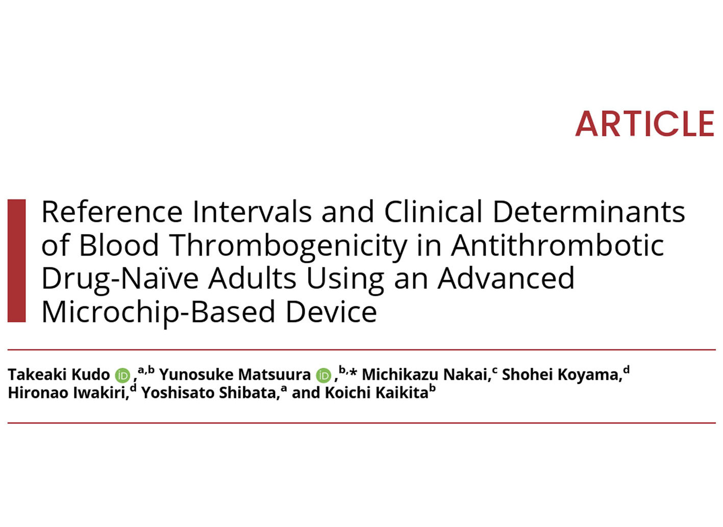 論文タイトル: "Reference Intervals and Clinical Determinants of Blood Thrombogenicity in Antithrombotic Drug-Naïve Adults Using an Advanced Microchip-Based Device"
