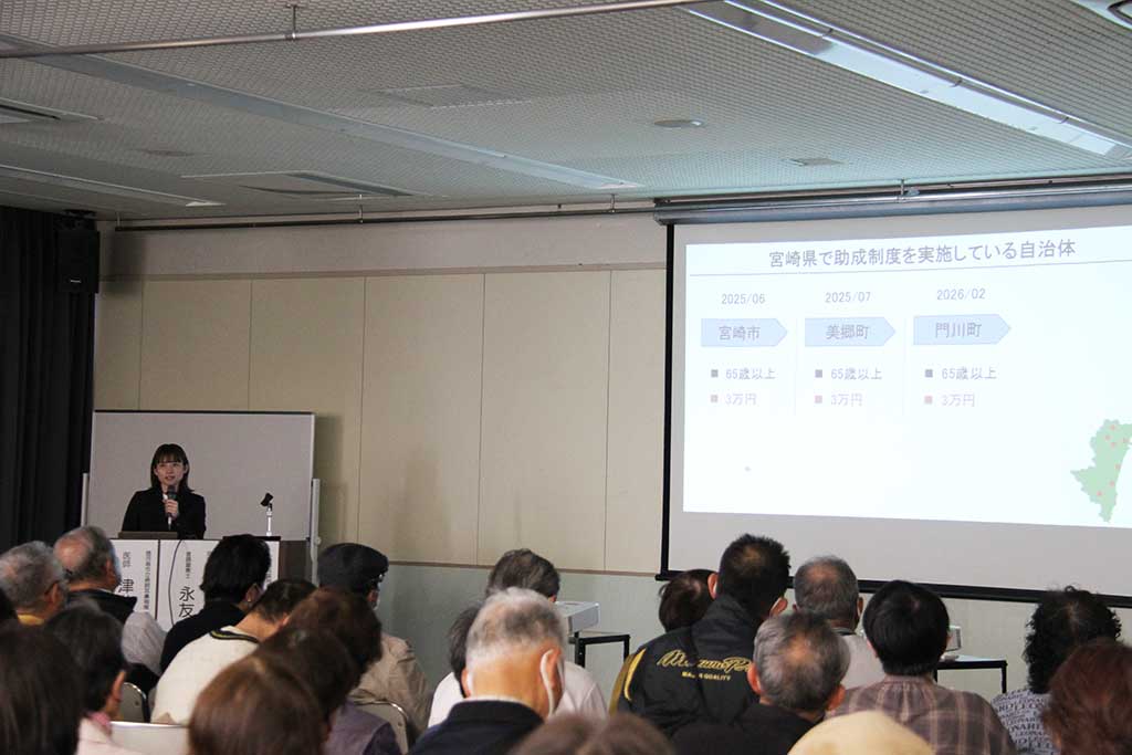 2025年6月より宮崎市で高齢者の補聴器購入費助成が開始されたことに伴い、加齢性難聴の啓発および助成事業の周知を目的として、「耳の聴こえと認知症」と題した講演会が開催されました。当日は約140名の市民の方にご参加いただき、盛況のうちに終了いたしました。難聴や認知症に関する正しい知識を深めていただき、健康寿命が延びることを願っています。