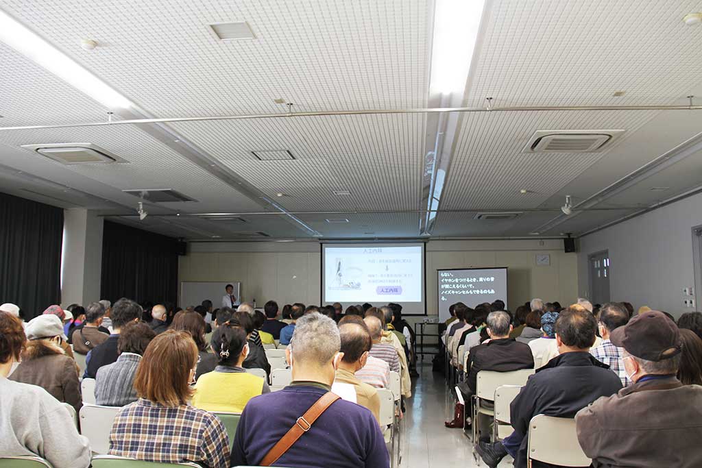 3月1日にJA AZMホールにて耳の日公開講座を開催させていただきました。100名を超えるご参加をいただき、大盛況のうちに終えることができました。 塚田先生と松井先生の講演の後にはたくさんの質問をいただき、また個別相談会にも多くの申し込みがあり、聴覚に対する期待の多さを実感しました。