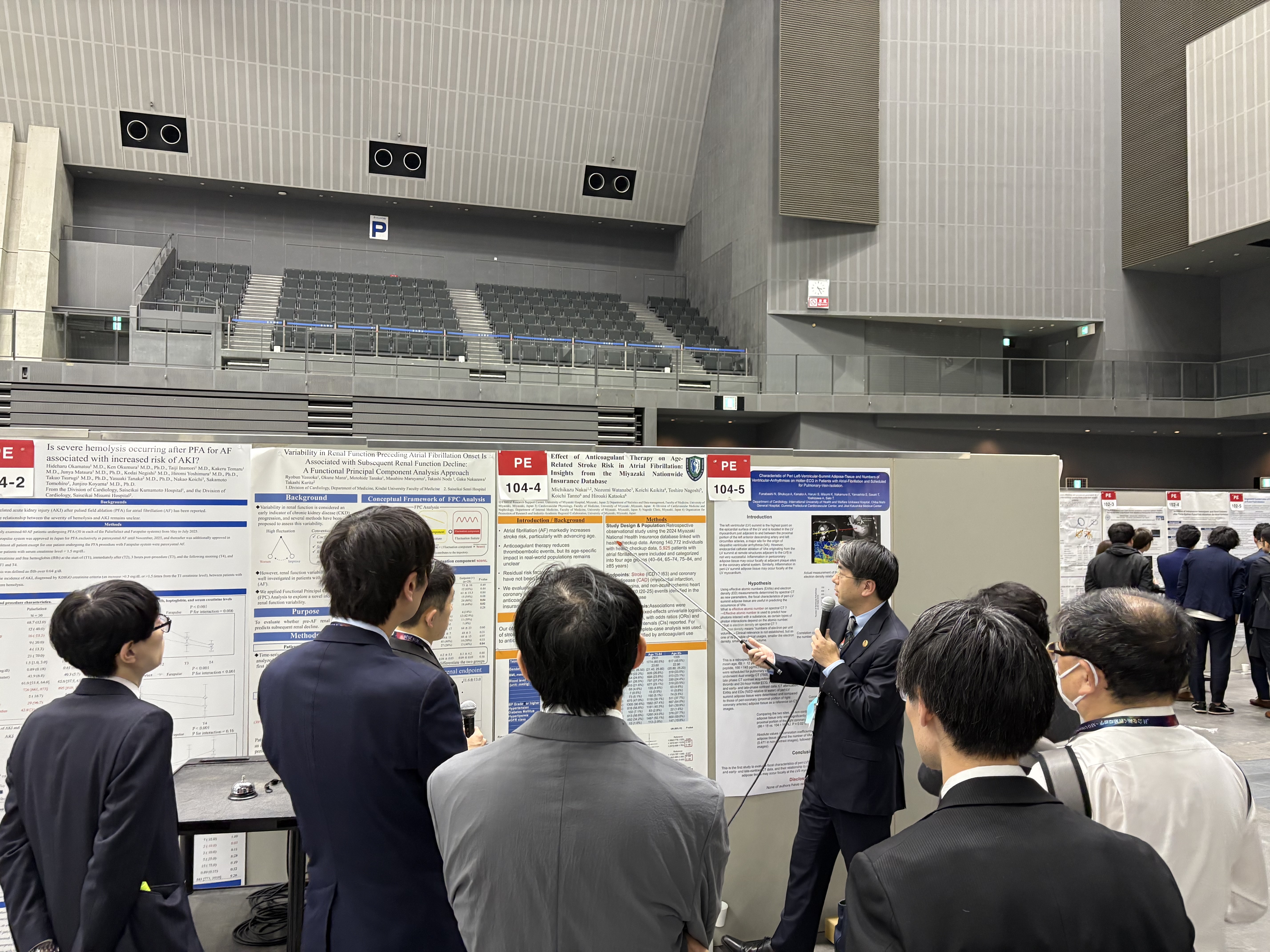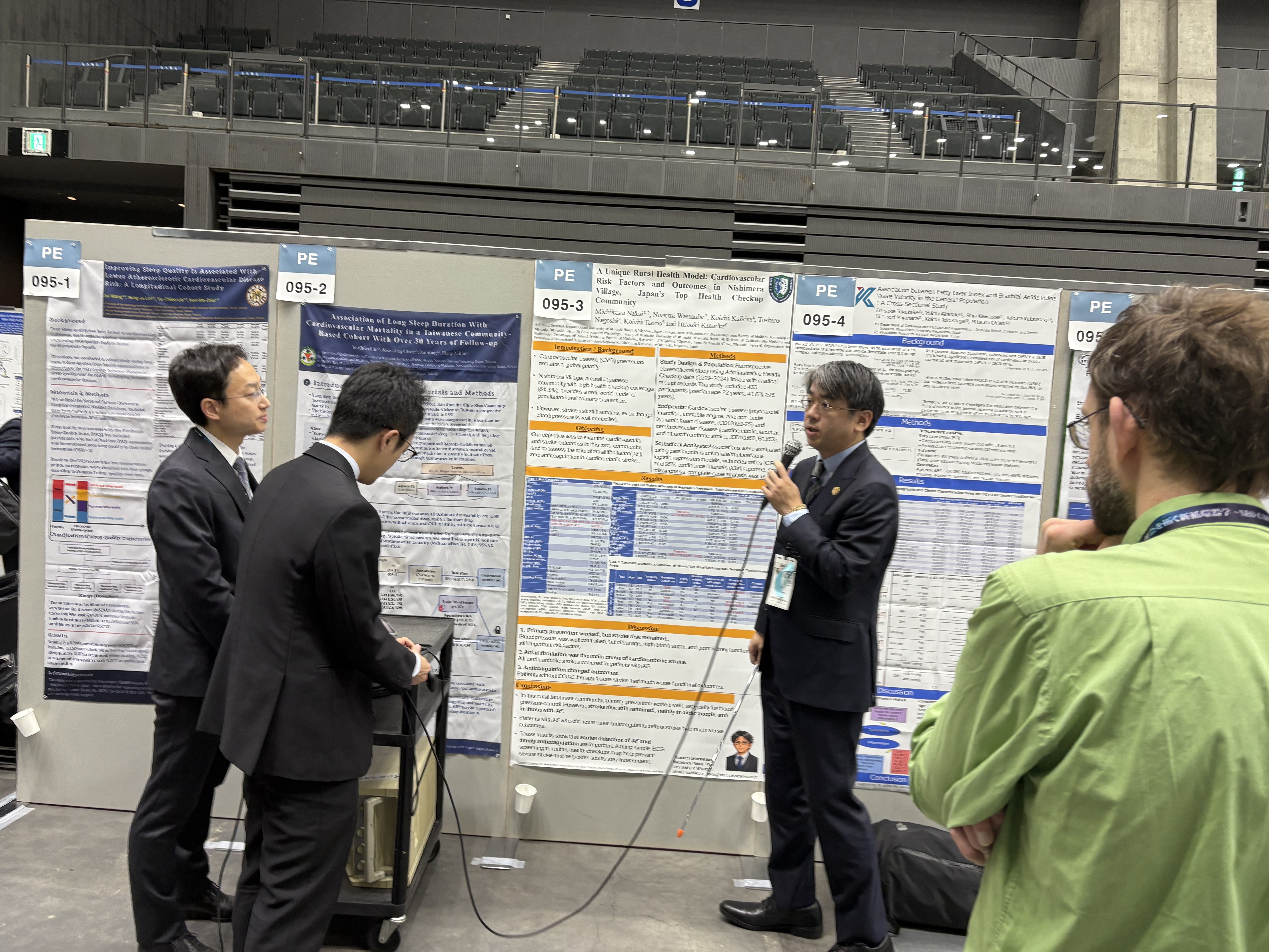 1つは宮崎県西米良町の健診データから循環器疾患のリスク要因を検討し、心房細動が心原性脳塞栓症に深く関与することを示しました。もう1つは、宮崎県の国保データから心房細動患者の脳卒中リスクを検討し、抗凝固薬の効果と高血圧などの残るリスクの重要性を示しました。