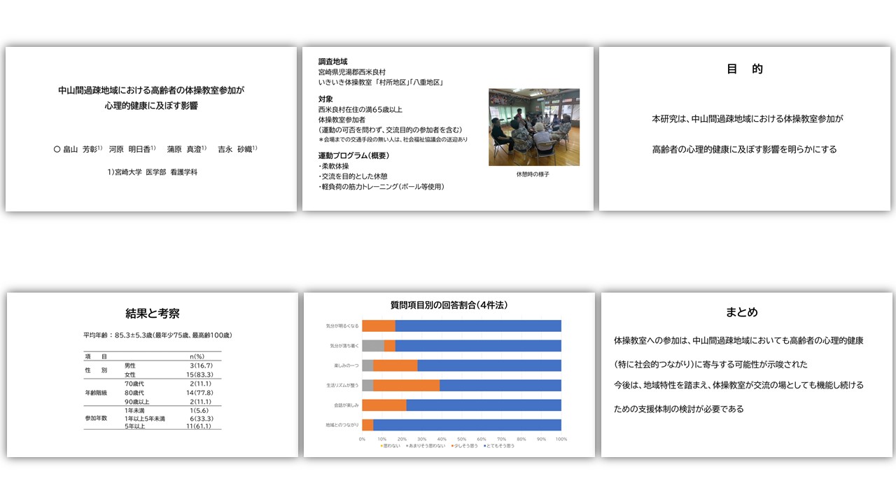 畠山芳彰、他:中山間過疎地域における高齢者の体操教室参加が心理的健康に及ぼす影響