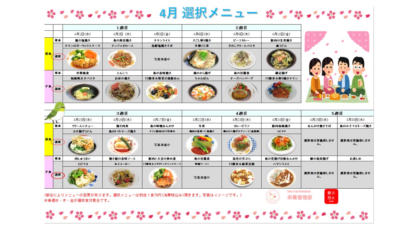 ✿選択メニューのお知らせ 2026年4月✿