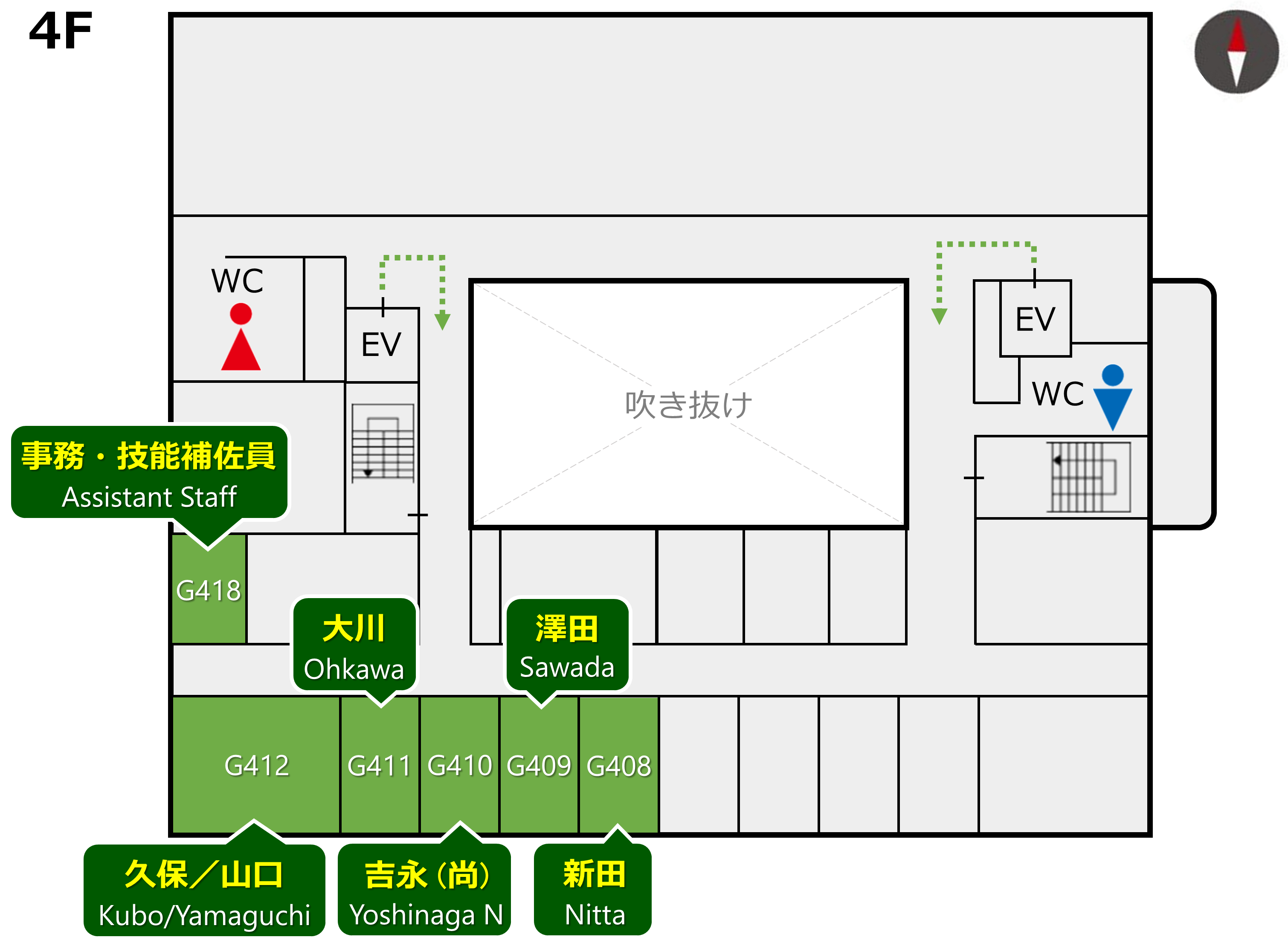 居室へのアクセス(4階フロアマップ) Access to the Staff Room (4th Floor Map)